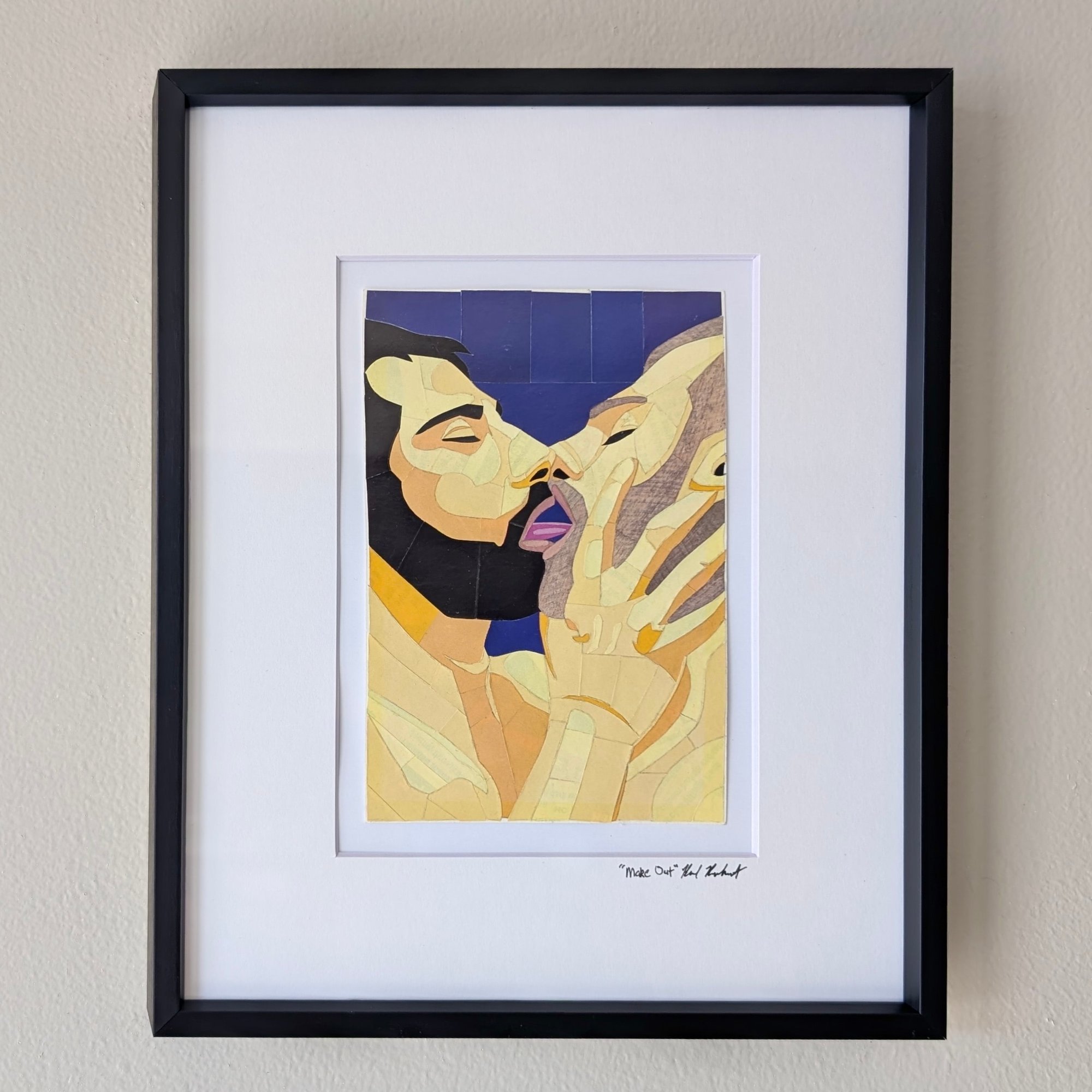This is an original 4"x6" paper mosaic, created by hand-cutting semigloss paper into sexy portraits and erotic scenes.
